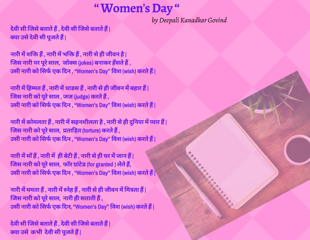 Women’s Day by Deepali Kanadkar Govind | Posted on March 9, 2021June 23, 2021 Email Facebook WhatsApp Twitter LinkedIn Pinterest How useful was this post? Click on a star to rate it! Submit Rating Average rating / 5. Vote count: No votes so far! Be the first to rate this post. Views: 6,111